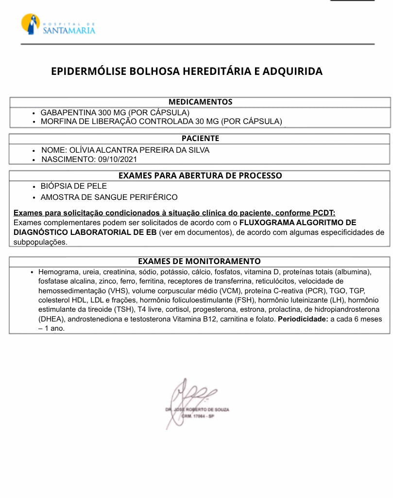 A Olívia sofre de Epidermólise Bolhosa, uma doença rara, cruel e dolorosa, que faz com que a pele dela se machuque, se queime e se solte com qualquer toque. Só quem vê de perto entende a dor de uma criança que já perdeu os dedinhos, e que não consegue comer sem sentir dor.